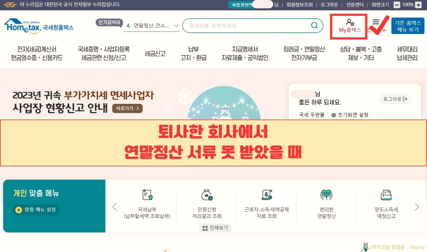 5. 화면 오른쪽 상단에 'My홈택스'를 클릭합니다.