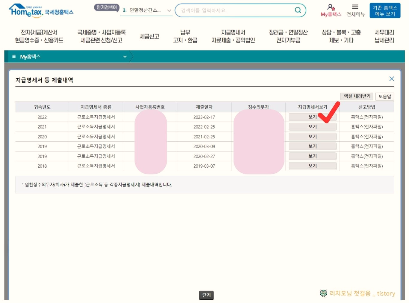 - 최근 5년의 지급명세서를 확인할 수 있습니다.