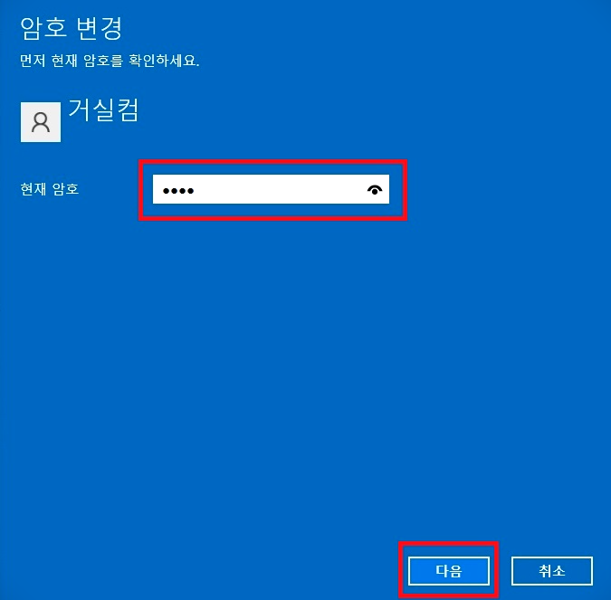 6. 현재 사용 중인 암호를 입력해야 합니다. 현재 비밀번호를 알지 못한다면 비밀번호를 변경할 수가 없습니다.